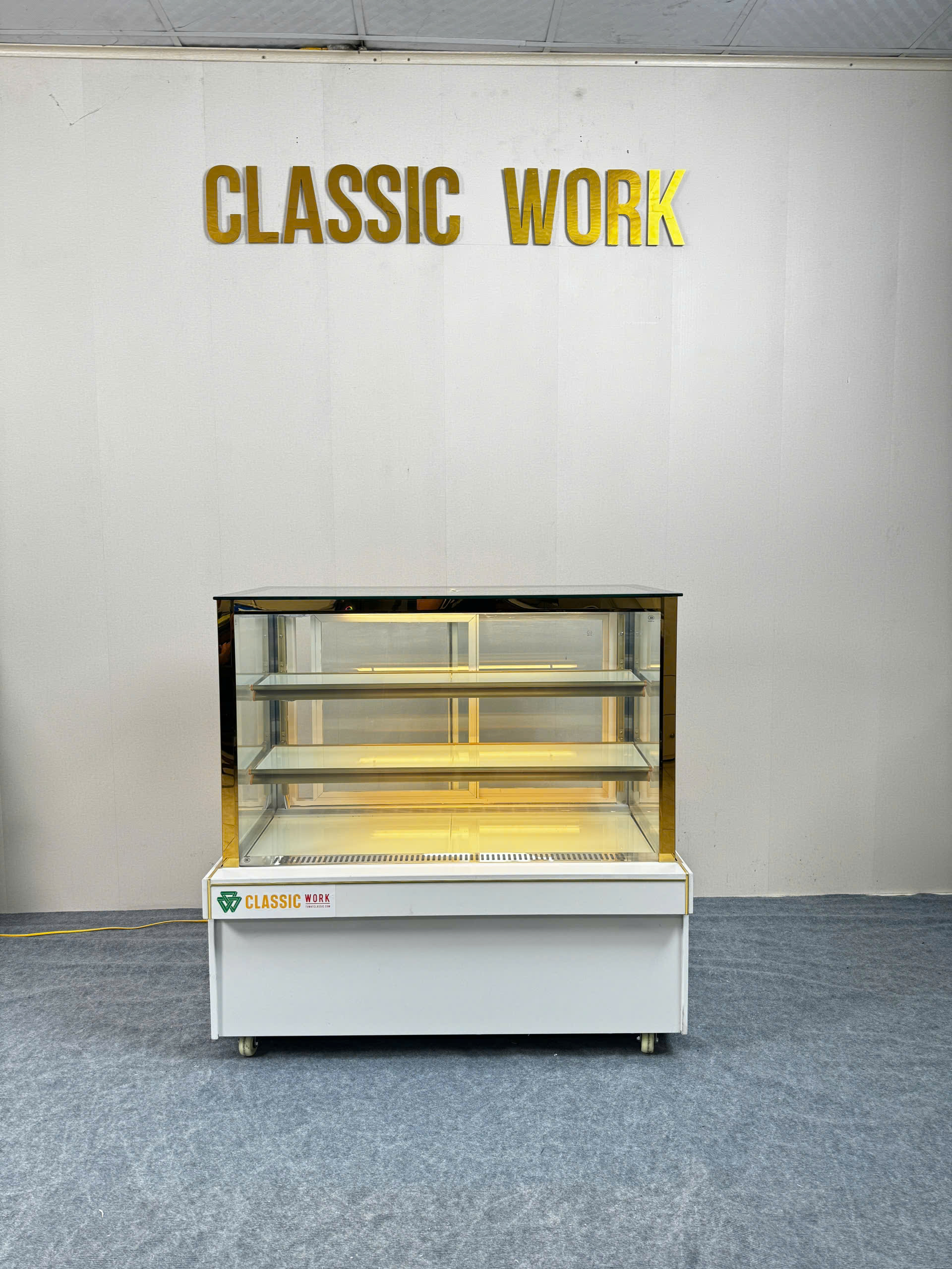 Tủ bánh kính vuông của chúng tôi được thiết kế với kiểu dáng hiện đại, phù hợp với mọi không gian từ cửa hàng bánh ngọt, tiệm cà phê, nhà hàng đến khách sạn. Kiểu dáng vuông vức không chỉ mang lại vẻ đẹp tinh tế mà còn giúp tối ưu hóa không gian trưng bày, cho phép bạn sắp xếp nhiều loại bánh khác nhau một cách gọn gàng và bắt mắt.