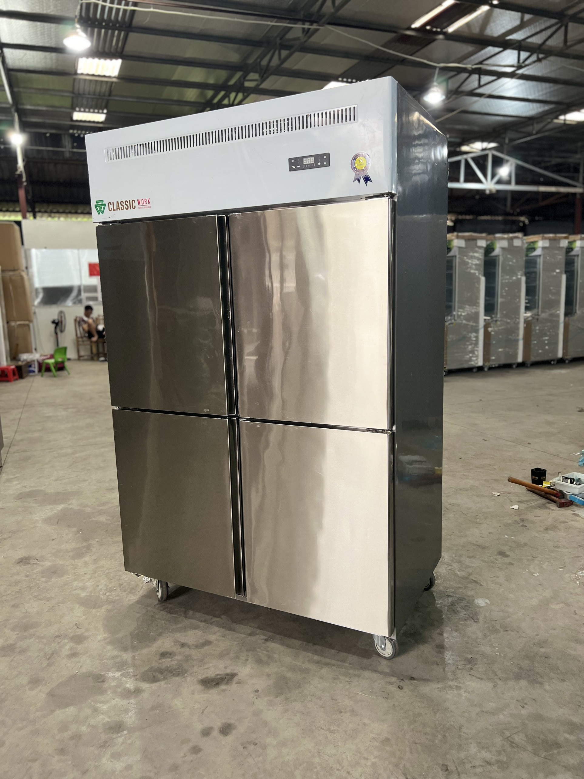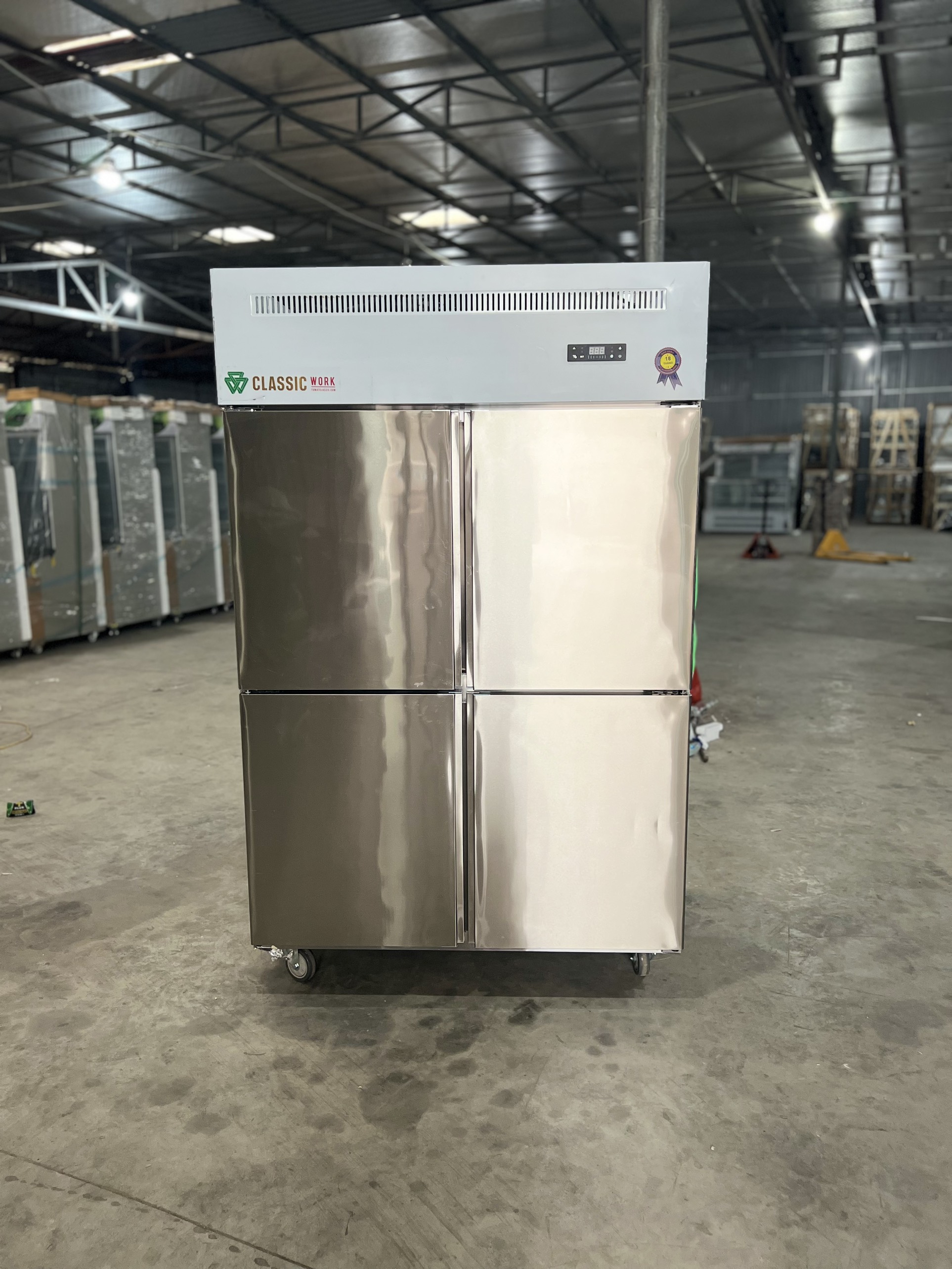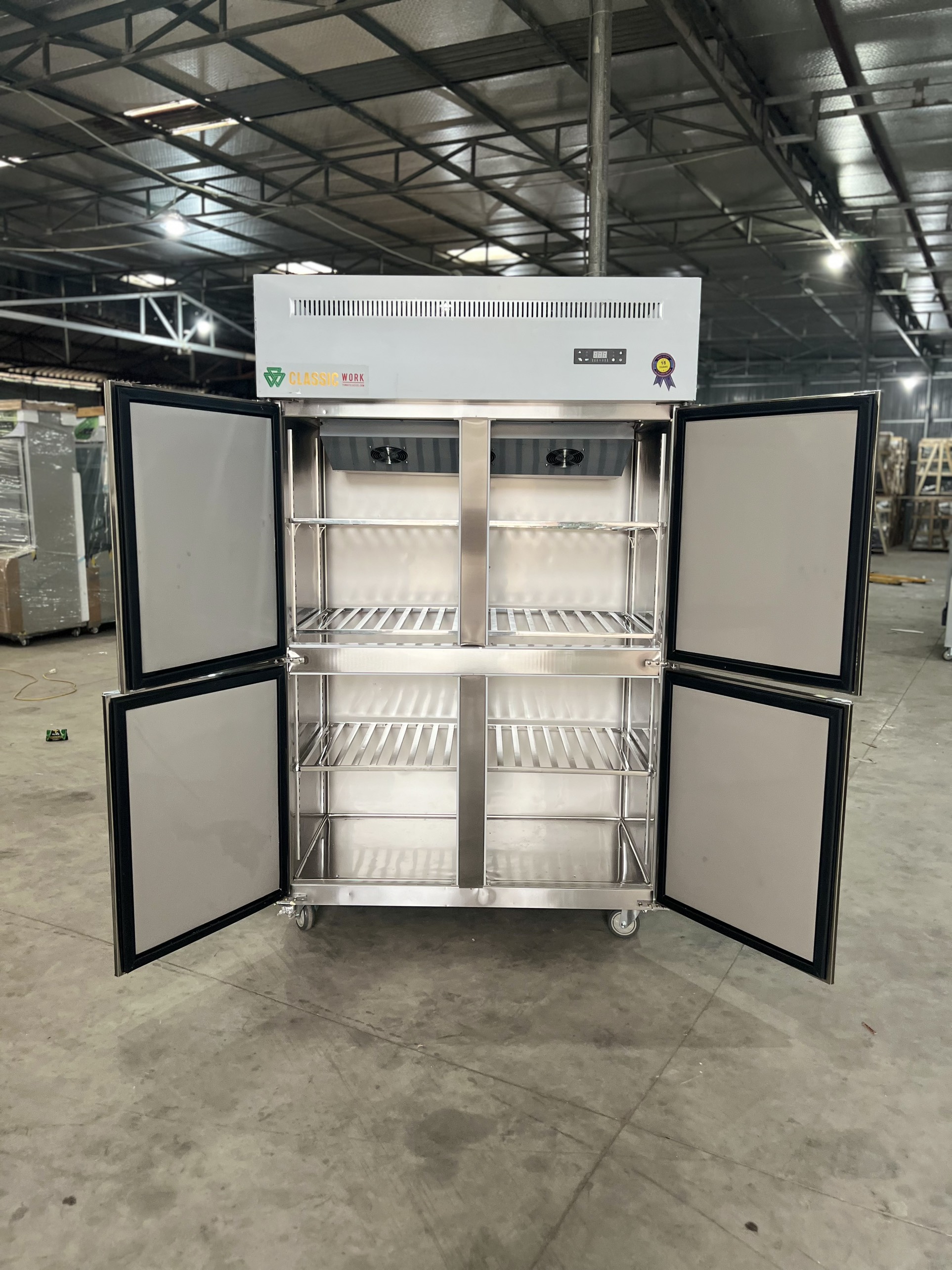 Tủ mát dành cho bếp nhà hàng 4 cánh được làm từ inox chống ăn mòn, sáng bóng, là thiết bị cần thiết để bảo quản thực phẩm số lượng lớn. Tủ mát được sản xuất trên dây chuyền công nghệ hiện đại bởi thương hiệu Classic Work. Tủ sở hữu nhiều tính năng hiện đại so với các dòng tủ mát khác trên thị trường hiện nay. Những ưu điểm của tủ mát bếp nhà hàng 4 cánh inox