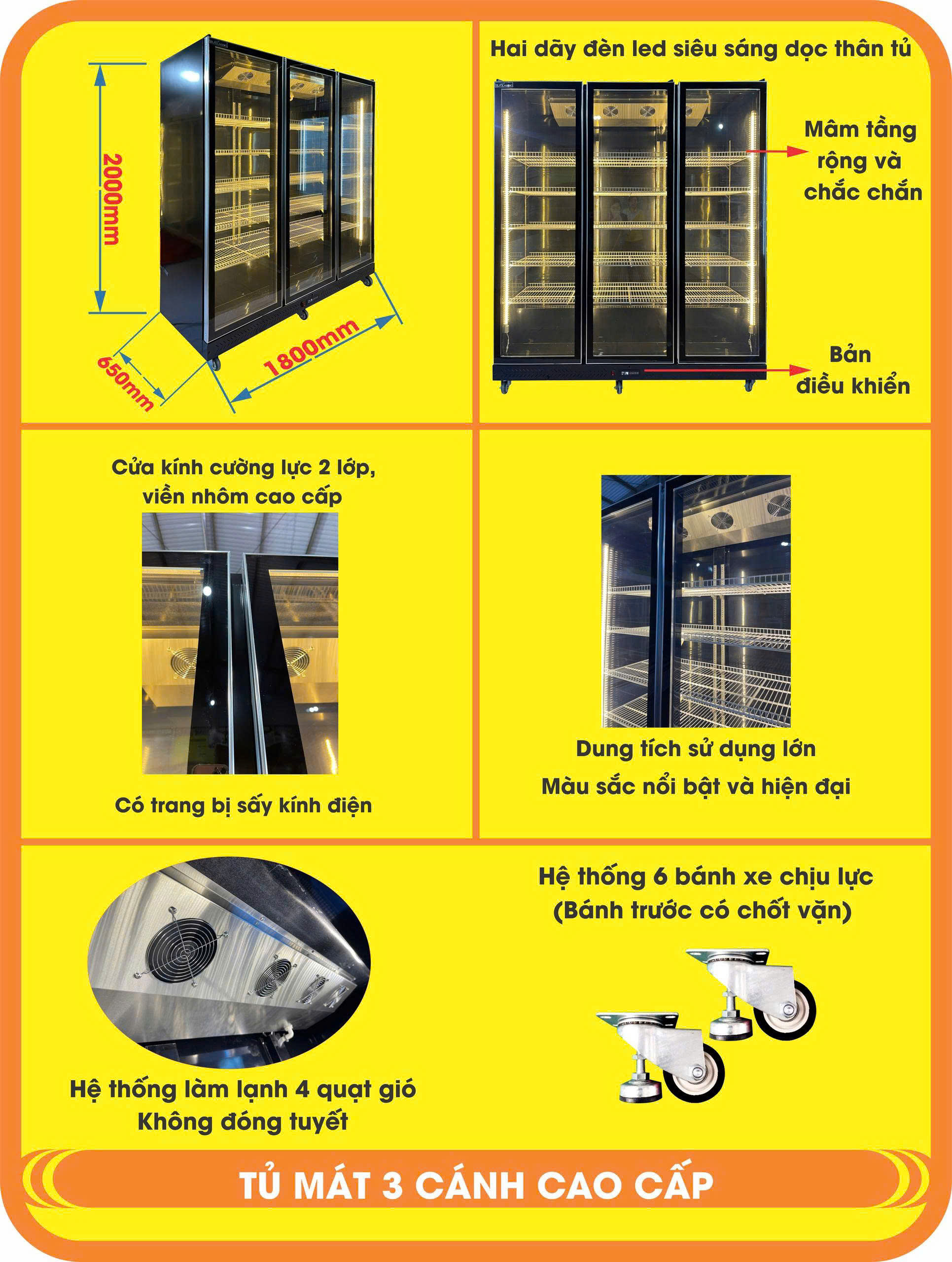 Ưu điểm nổi bật của tủ mát cao cấp 3 cánh kính full viền không nóc